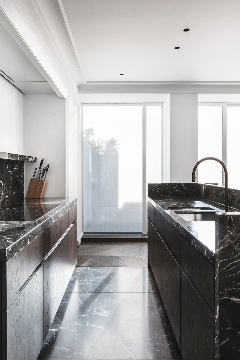 Для кухни важны эксплуатационные характеристики: влагостойкость профилей сохраняет форму и рельеф при изменении влажности, ударопрочность защищает от механических повреждений. Лаконичные молдинги объединяют фасады и порталы, делая интерьер организованным и выдержанным.