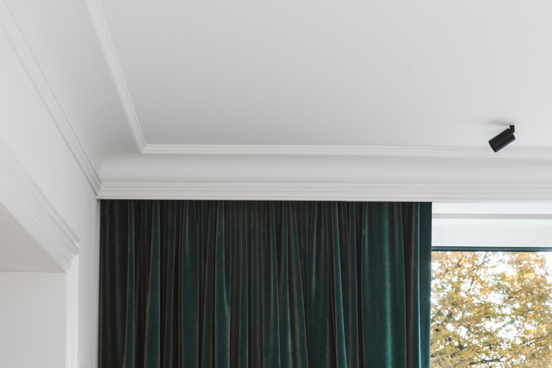 Особняк Кортрейк отражает европейское понимание гармонии: симметрия, чистые линии и акцент на пропорции. Основой концепции становится лепной декор из дюрополимера (Duropolymer) — материала, сочетающего влагостойкость, ударопрочность и легкость монтажа. Карнизы, молдинги и плинтусы формируют структуру пространства: выравнивают перспективы, задают масштаб и добавляют интерьеру визуальную высоту. Продуманная покраска усиливает эффект — от мягкого перехода между поверхностями до акцентных деталей.