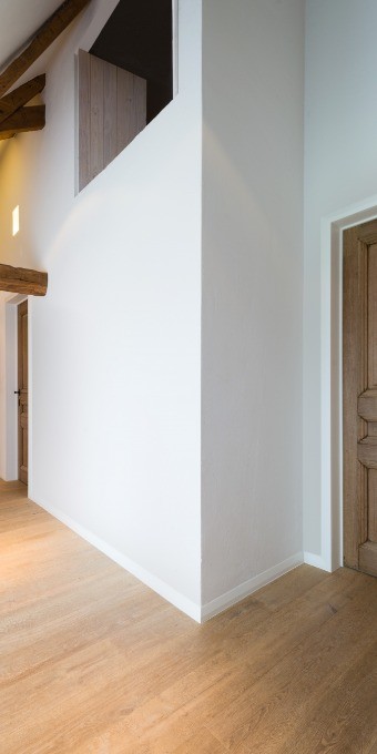 Этот простой плинтус имеет небольшой угол и вписывается в любой интерьер. Многофункциональный профиль создает плавный переход от стены к дверям, окнам и даже потолку.